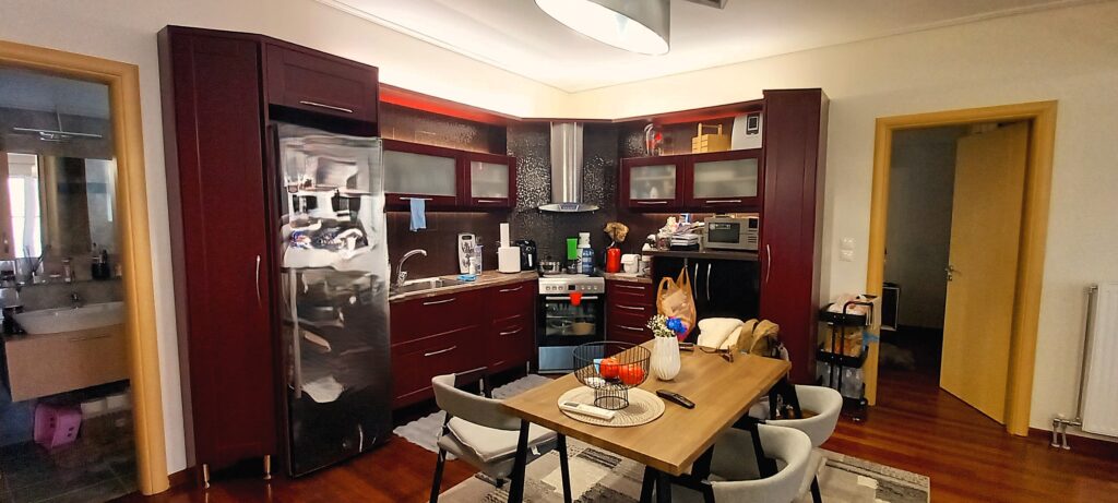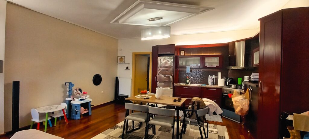 Η κατοικία είναι μεγάλη, διαμπερής και προσόψεως, προσφέροντας άπλετο φυσικό φως και αίσθηση άνεσης σε όλους τους χώρους. Αποτελείται από δύο ευρύχωρα υπνοδωμάτια και ενιαία σαλονοκουζίνα, ιδανική για σύγχρονο τρόπο ζωής και φιλοξενία.